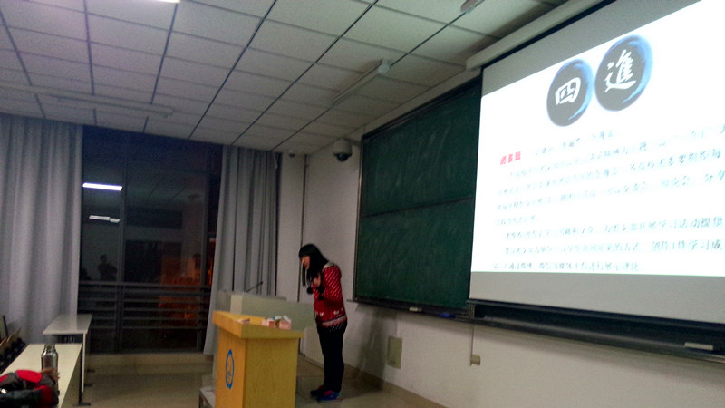 班会初始,主持人向大家讲明活动的目的,希望同学们借此机会共同 学 习 “四进四信” ,认真领会其精神。团支书以生动形象的幻灯片的形式向大家介绍“四进四信”,号召大家牢固树立对党的科学理论的信仰,积极传播青春正能量,做习近平总书记讲话精神的忠实研究者、积极传播者和坚定践行者。团支书还带领大家观看习总书记讲话的视频,重新学习讲话内容,同学们纷纷讲述自己对于习近平讲话内容核心精神的理解,表示要以“四进”为手段,以“四信”为目标,并结合现实生活,以实现学习宣传讲话精神的日常化、长期化。在同学们深入浅出、鞭辟入里的发言中活动第一阶段接近尾声,现场同学深受鼓舞。