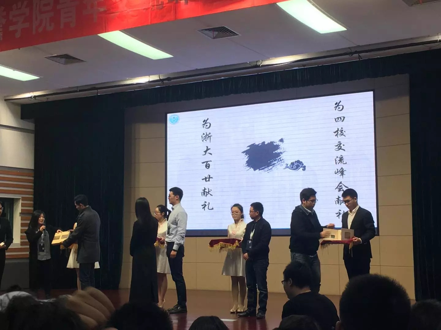 19日上午10点,本次青年交流峰会闭幕式在浙大医学辅楼报告厅举行,浙江大学竺可桢学院副院长唐晓武老师出席了闭幕式。闭幕式上首先对上午参与互动游戏的各个小组进行了颁奖,有趣的奖项设置让人捧腹大笑。唐晓武老师代表浙江大学竺可桢学院向远来的客人表示了欢迎,对大会的圆满闭幕表示了祝贺,他带领大家一起回顾了四校联谊活动的缘起和发展,并希望今后这个平台能发挥更大的作用,进一步促进相互的交流学习,为四院的发展贡献更大的力量。此后各校的带队老师进行了大会总结:老师们回顾了两天的活动,分享自己的感受与收获,也期望参与的同学能把在短短两天的交流中所学所悟进行认真的总结,运用到今后的学习工作中。