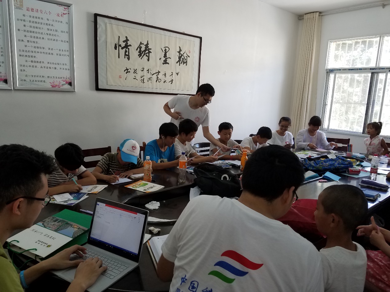 在实践10天之内,实践队员们还利用村部为我们提供的文化站,临时开设了暑期课堂,一方面监督、帮助他们完成假期作业,同时通过各类活动帮助他们开拓眼界、养成对于学习知识、探索世界的兴趣。每天的下午我们帮助监督孩子们自主完成他们的暑假作业,每天上午我们则会为他们补充一些有趣有益的课外小活动。