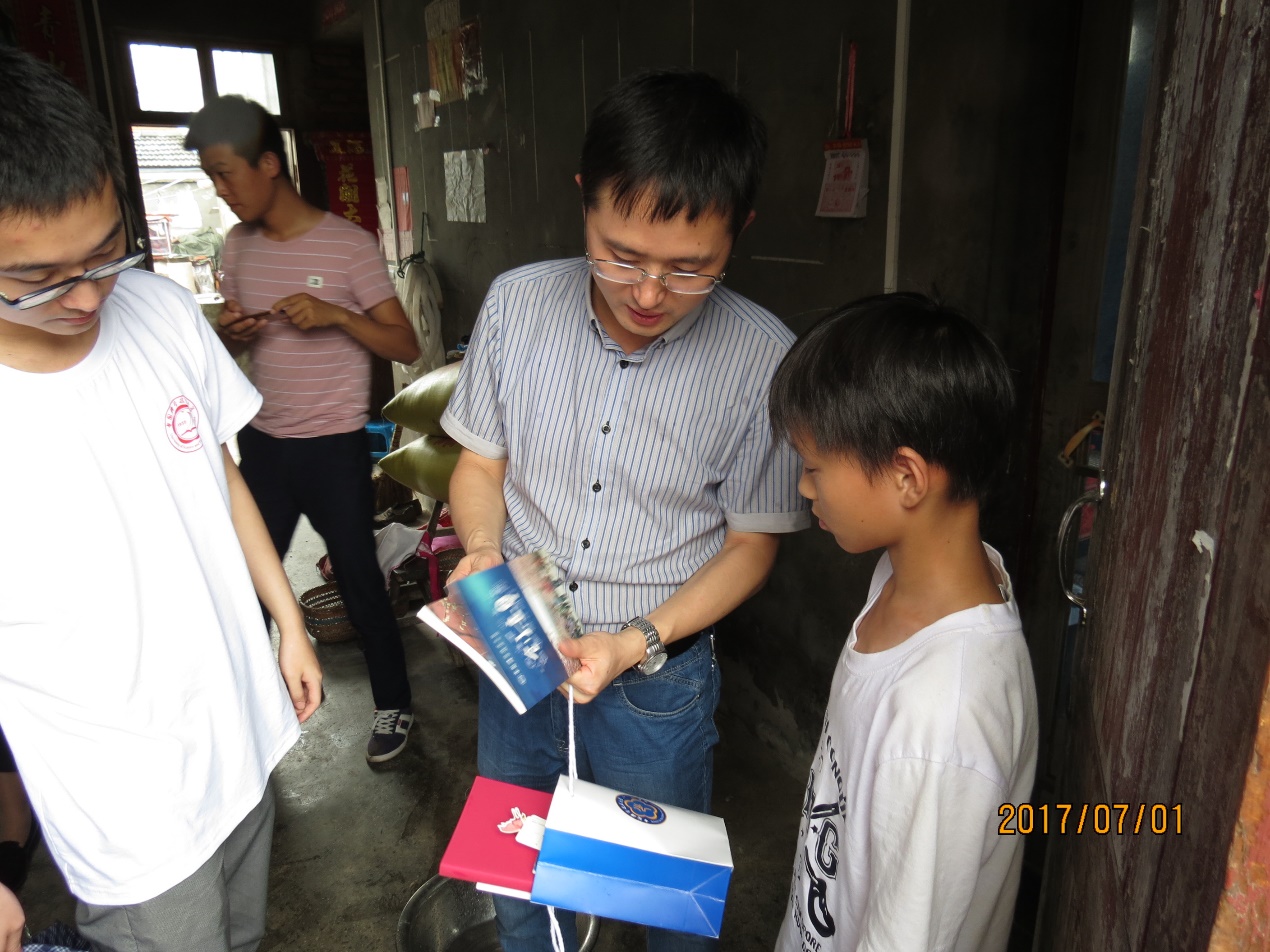 当天下午又来到当地范庄村委开展座谈活动,科大校友杨磊师兄在当地担任第一书记,主持范庄村扶贫工作。杨磊师兄们为我们讲述了当地的发展历程以及自己的亲身工作经历,并就此和同学们进行了有关职业选择与规划的交流,同学们在和师兄的谈话中获得了宝贵的经验。座谈结束后,在杨磊和张靖两位师兄带领我们走访了当地的部分贫困户,我们精心准备了个中小学生用的书籍、笔记本、文具等。在走访这些贫困户的家庭的过程中,大家了解到偏远农村仍然存在的生活困难问题,并和这些家庭里的孩童接触,表示了关心和问候,传达了自己的一份心意。在党和政府的帮助下,大多数困难户都安装了光伏发电设备,既达到了扶贫的目的又推广了光伏发电,一举两得;而免除贫困学生的住宿费、生活费则使“不让任何一个学生因为经济原因而辍学”的目标成为可能。虽然国家经济在飞速发展,但是贫富差距仍旧存在。因此,当我们在明亮的教室学习的时候,不能忘记还有一些孩子时刻面临因为家庭原因而辍学的可能。我们不仅可以在物质上给予帮助,还能为其做出精神上的鼓励。
