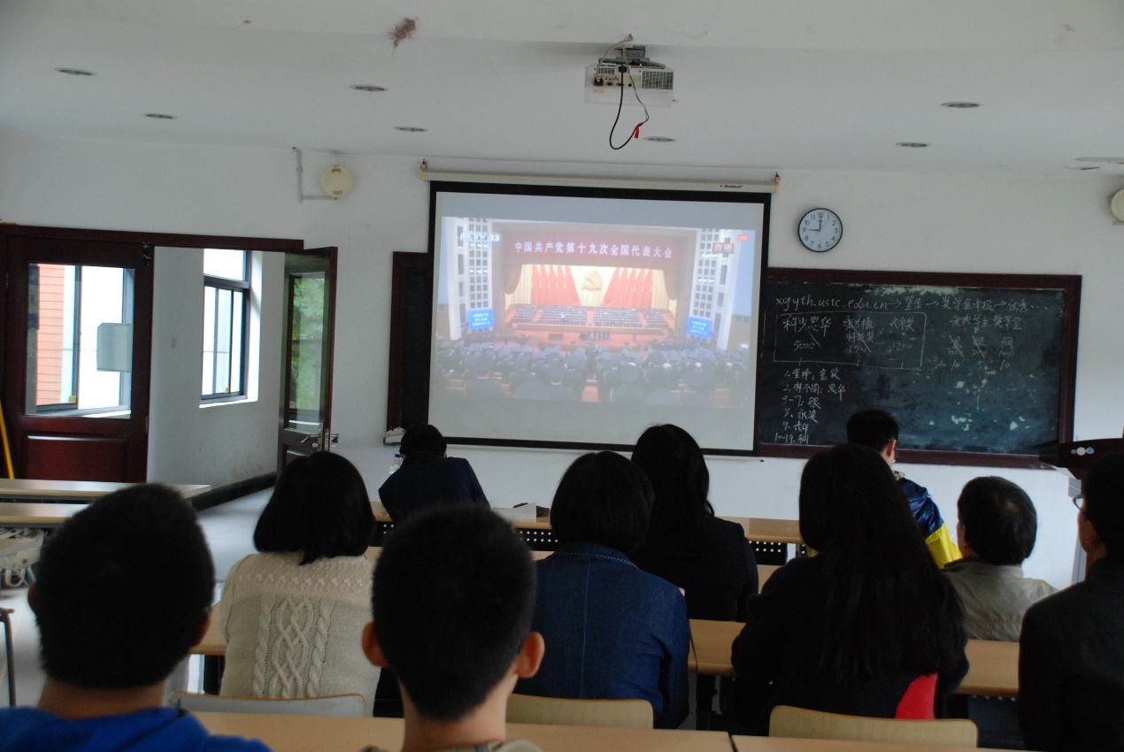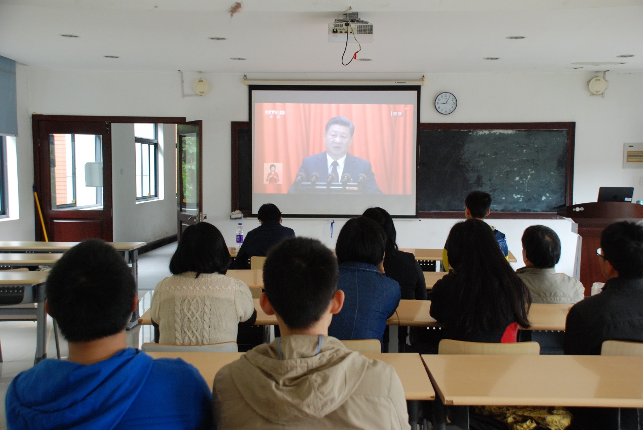 10月18日,中国共产党第十九次全国代表大会在北京人民大会堂隆重开幕,习近平总书记代表第十八届中央委员会向大会作报告。bet38365-365师生怀着庄严喜悦的心情,通过多种途径认真收听收看党的第十九次全国代表大会开幕式电视直播盛况。上午9时,在学院党总支尹民书记的带领下,bet38365-365全体教工和团学骨干集中收看了十九大开幕式盛况。